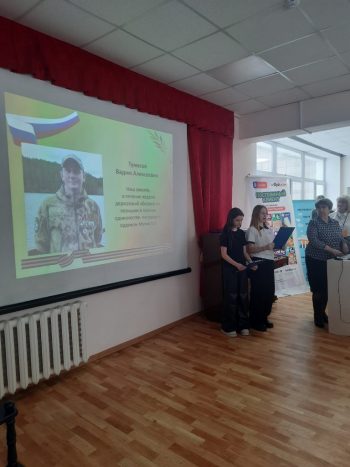 – рассказан проект по Герою России — Тумасову Вадиму Алексеевичу (он, кстати, снова в строю и опять на защите!) Козловой Варварой и Толмачёвой Василисой под руководством Щербаковой Е. В. (учениц и учителя русского языка и литературы МАОУ СОШ №2) ;