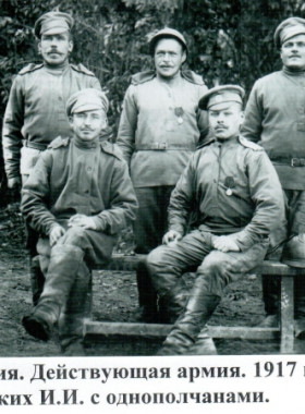 Гаренских Иван Иванович (Степанович) сидит слева Карпенков Григорий Давыдович (2 справа) Лукин Евгений Андреевич (справа) Миронов Иван Александрович Петелин Аркадий Полуэткович (справа)