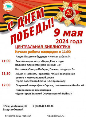 «Диктант Победы» — международная историческая акция на тему событий Великой Отечественной войны, проводимая под эгидой партии «Единая Россия». В этом году акция прошла 26 апреля на площадках по всей России и за рубежом. Центральная библиотека присоединилась к проекту и приняла более 30 участников. Взрослым и детям предлагалось вспомнить имена прославленных героев, хронологию ключевых сражений, ...