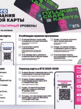 Уважаемые читатели, владельцы «Пушкинской карты»! Информируем вас, что с 1 января 2026 года роль оператора Программы Пушкинская карта перейдет от АО «Почта Банк» к Банку ВТБ (ПАО), в связи с чем вам необходимо перевыпустить «Пушкинскую карту» в Банке ВТБ (ПАО). Обращаем внимание, что заявление на перевыпуск карты необходимо подать до 28 декабря 2025 года включительно. […]
