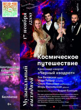 17 ноября в 12.00 встречаемся на трансляции! Возможно, столь же неизведанным, таинственным и прекрасным здесь, на Земле, можно назвать музыку, многоликую, живую, чарующую. Творчество квартета «Чёрный квадрат» — это полёт в музыкальную вселенную, открытие новых планет-жанров, возможность посмотреть сверху, со стороны на любимые произведения, заряд энергии далёких звёзд, блеск талантов ...