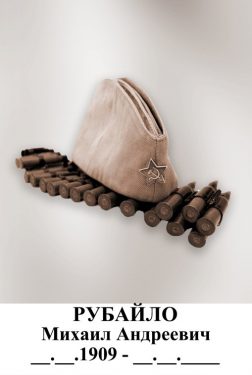 / Книга памяти / Голендухино / Рубайло Михаил Андреевич Рубайло Михаил Андреевич Родился в 1909 году Мобилизован в конце войны, в 1945 году. Впоследствии проживал в Свердловске. Источник: От Режа до Берлина. – Т. 3. – Реж, 1998. – С 75