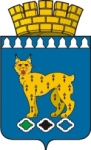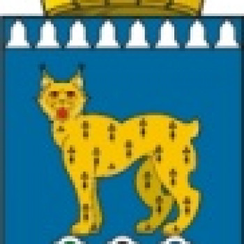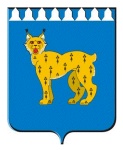 В лазоревом поле под вершиной опрокинуто-беличьего меха – золотисто-горностаевая стоящая рысь настороже с червлеными глазами и пастью, черными когтями и кисточками на ушах, сопровождаемая в оконечности тремя окаймленными серебром камнями в пояс: зеленым, черным и лазоревым.