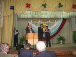 С большой гордостью рассказывала Александра Григорьевн Бичурина о достижениях, некогда большого совхоза,  о людях награжденных орденами за свой нелегкий труд,  ее рассказ дополнили ученицы Таня  Гусева  и Юлия Епифанова  презентацией  о  людях Арамашки, отмеченных правительственными наградами.