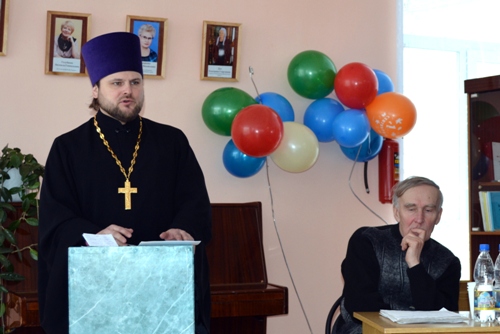 Некоторые факты из истории Богоявленской церкви, здание которой было переоборудовано под учебное заведение, поведал присутствующим Б.В. Вавилов. Удивительную историю о возведении памятного знака в честь Георгия Победоносца  в селе Останино рассказал  Г.Е. Колмаков. В.В. Писчиков, глубоко знающий историю религий, сделал интересный доклад на тему “Связь времен: православная церковь и учения святых отцов и святых апостолов”.  По ходу выступления он доступно объяснял разные понятия: что такое “апостол”, “евангелие” и др.
