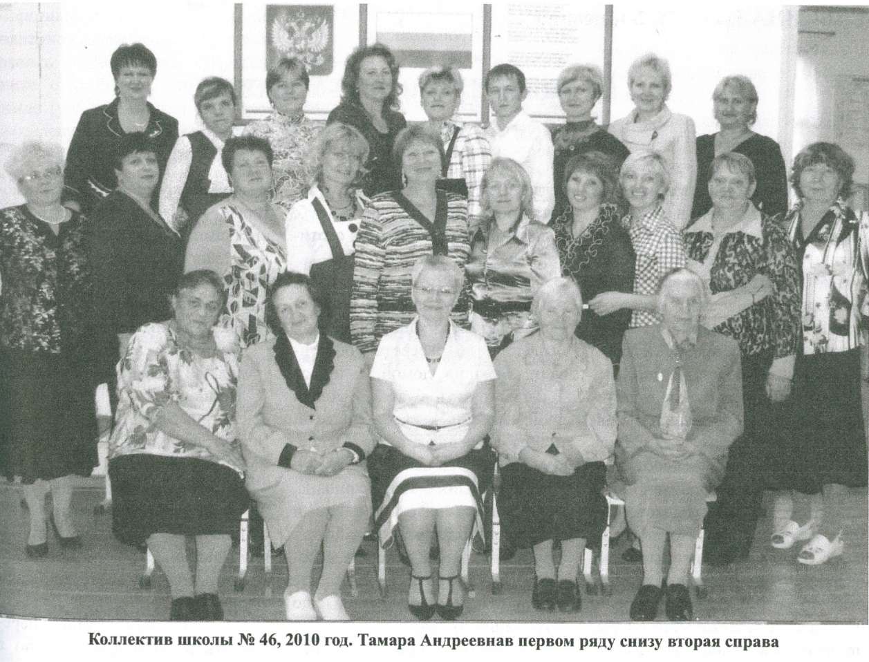 1 сентября 1956 года Тамара Андреевна начала учить математике детей и взрослых в 46 школе. Приняла классное руководство седьмого, выпуск­ного класса. Школа работала в одну смену. В это время директором школы стал Осипов Георгий Автономович. Работала и вечерняя школа с пятого по седьмой класс. Желающих получить образова­ние было много. В основном фронтовики, работаю­щие на предприятии на руководящих должностях, из-за войны не получившие образование. Они с энтузиазмом восполняли нехватку знаний. Окончив семилетку, почти все поступили в Горно-металлургический техникум в Свердловске на заочное отделение.