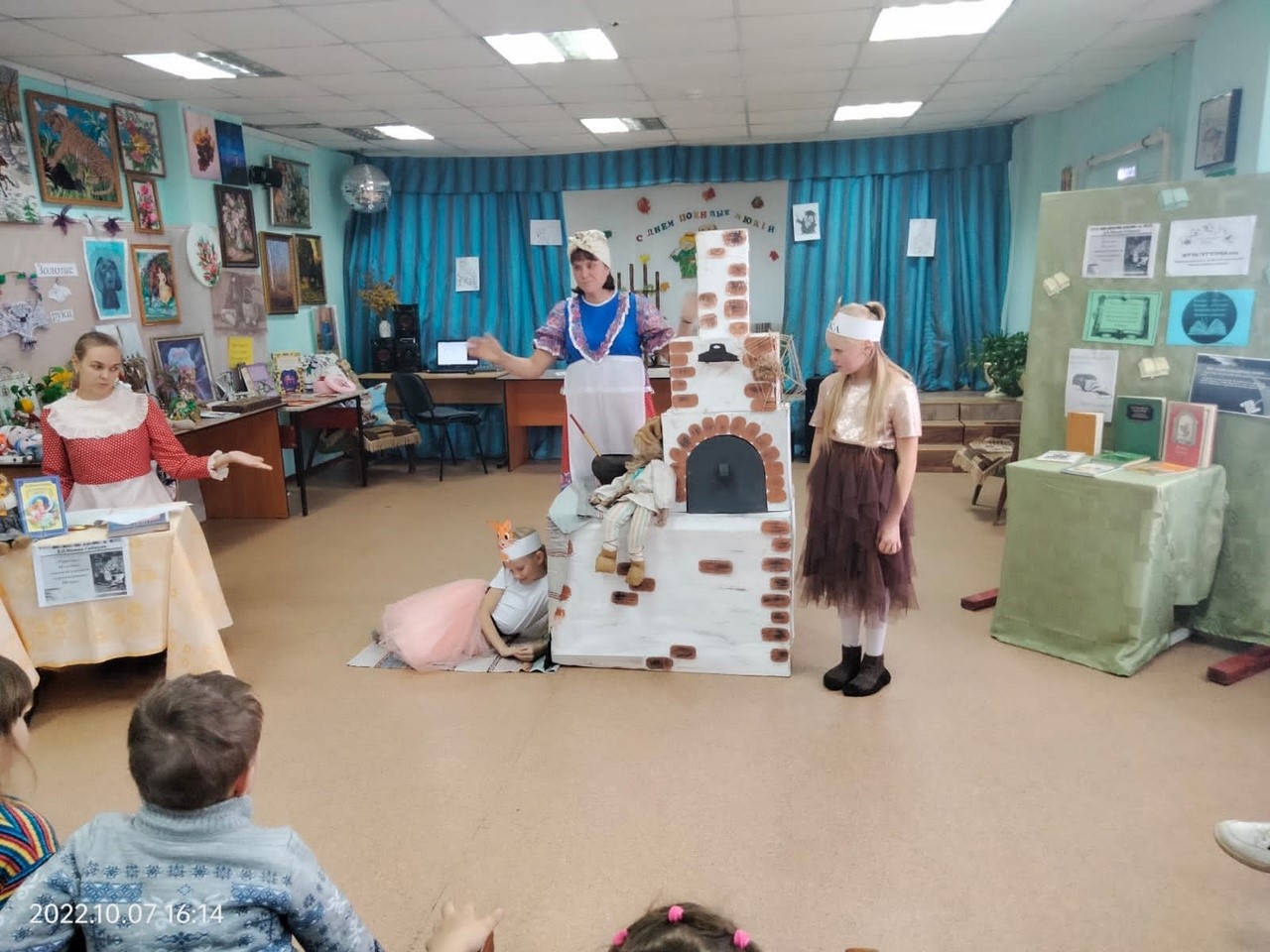 Библиотекарь Амосова Е.Н. прочитала для присутствующих русско-народную сказку «Лихо одноглазое». Слегка устрашающая история учит детей смело смотреть в глаза своим страхам, с твердой уверенностью в том, что все проблемы решаемы. Для зрителей совместно с Голендухинским клубом было представлено театрализованное чтение Д.Н. Мамина-Сибиряка» «Притча о молочке, овсяной кашке и сером котишке Мурке».