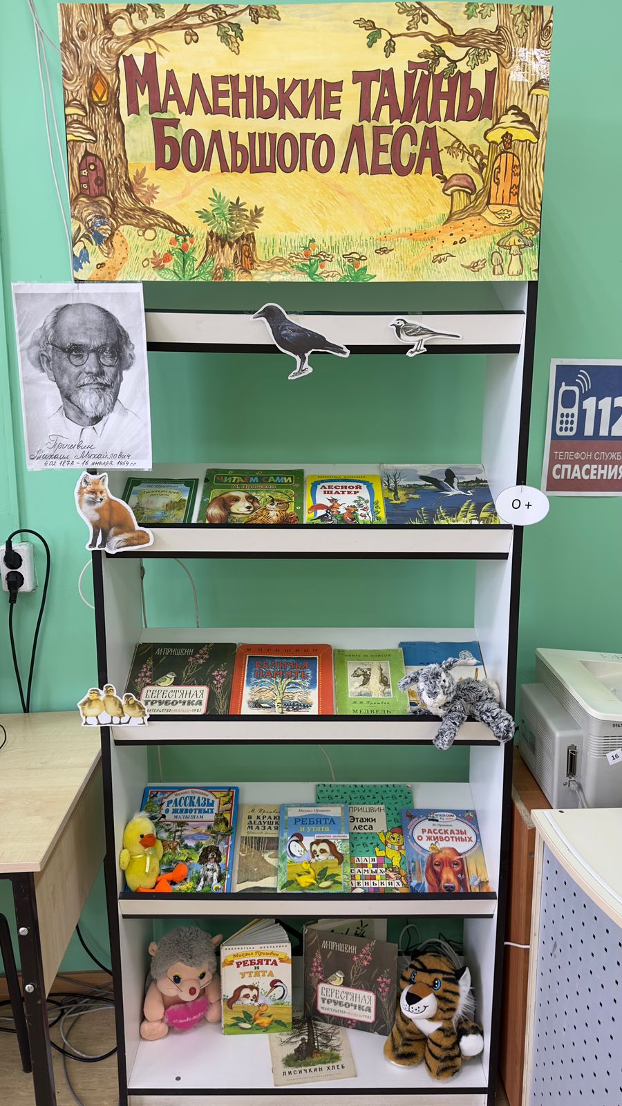 М. Пришвина называют писателем-волшебником, писателем-ведуном, от слова «ведать», то есть знать. Большой знаток природы и родного слова, он мог видеть то, что другие не замечали, находя чудеса и волшебство в самых обыкновенных явлениях природы. Охотник и путешественник, Пришвин много колесил по нашей стране. География его поездок обширна. Это Север, Дальний Восток, средняя Азия и Казахстан, Кавказские и Хибинские горы: «Моя охота, – признавался писатель, – в «находках», я должен найти в природе такое, что другим неведомо, и, может быть, никто еще в природе с этим не встречался». В ходе мероприятия, школьники получили возможность погрузиться в живой таинственный мир русской природы, попытаться открыть вместе с любимым писателем ее Чудеса, а также познакомиться с обстановкой, в которой жил и писал свои рассказы М. Пришвин. Благодаря образному слову Пришвина, дети смогли лучше узнать о повадках животных и птиц, услышать их разговоры, понять, о чем все они шепчутся, шелестят и поют. Помогла им в этом викторина о живой природе по таким произведениям, как «Дятел», «Терентий», «Пень-муравейник», «Беличья память», «Этажи леса», «Щука», «Гости». Эти и другие работы Михаила Пришвина были представлены на выставке «Маленькие тайны большого леса».