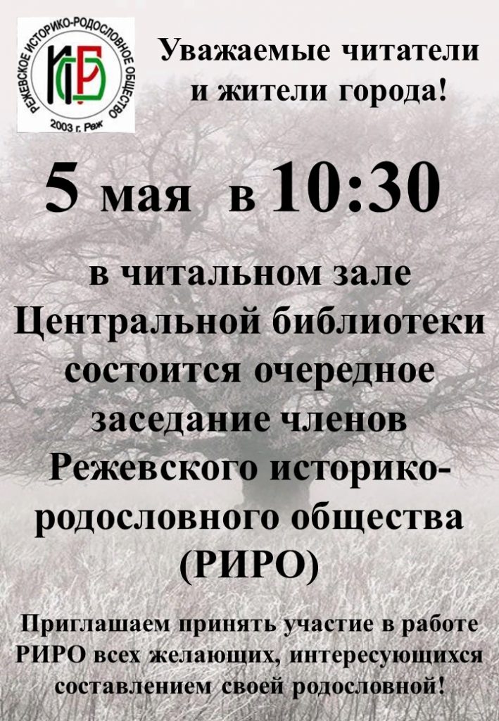 / Новости / Заседание Режевского историко-родословного общества Заседание Режевского историко-родословного общества