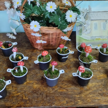 Ребята послушали сказку Пляцковского «Мухомор».  Для того чтобы не собирать мухоморы в лесу, дети изготовили поделку «Мухомор на полянке», которая будет стоять на полочке и украшать интерьер.