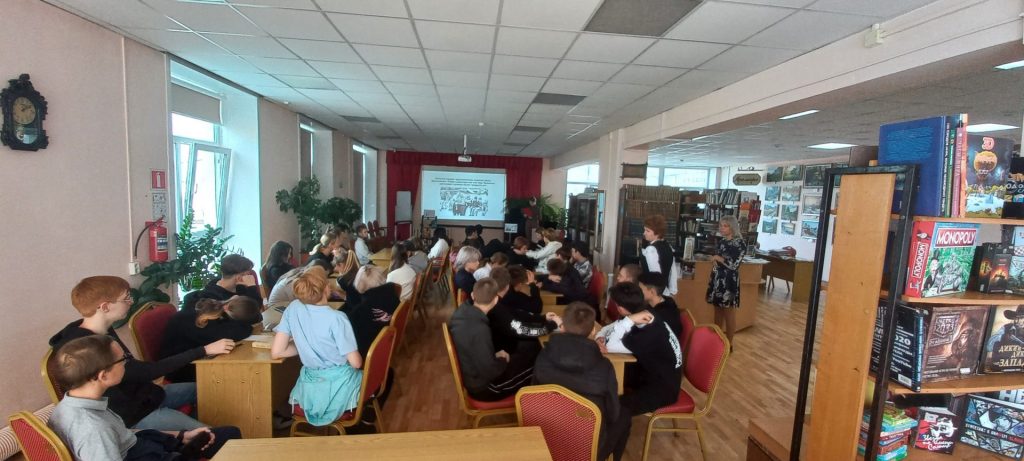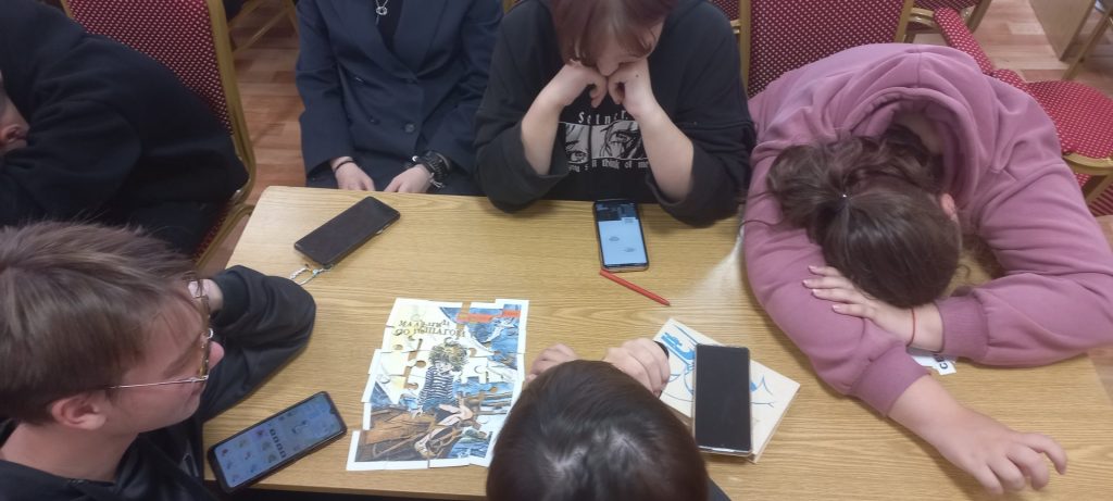 Старшеклассники познакомились с биографией Командора, прошли блиц-опрос, собирали названия произведений Владислава Крапивина и пазлы обложек книг, читали цитаты из рассказов автора, а также слушали отрывок из книги «Журавленок и молния» приглашенного гостя – члена любительского художественного творчества литературного объединения “Исток” – Романова Анна Алексеевна.