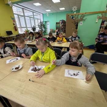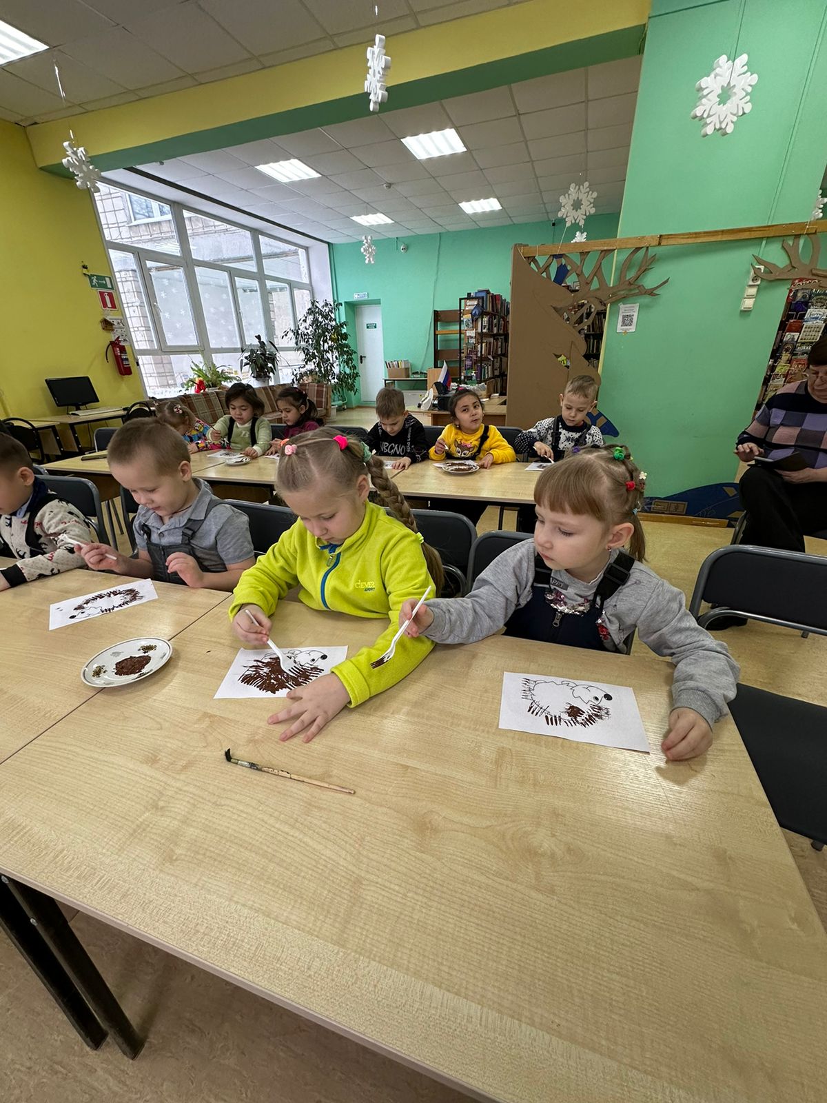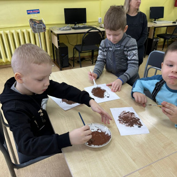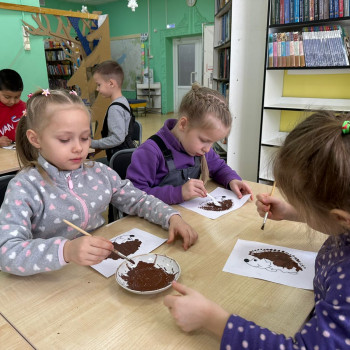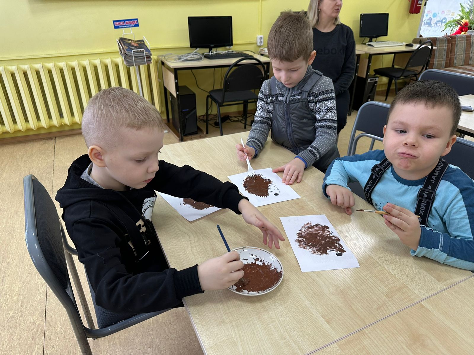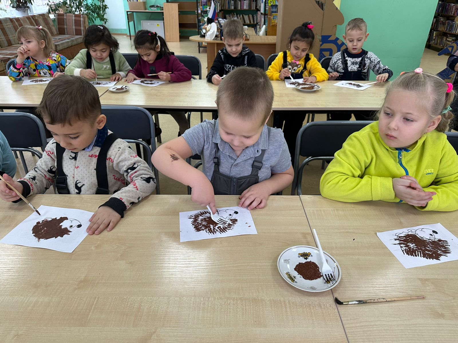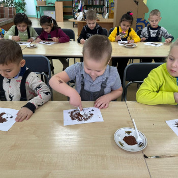 В творческой части мероприятия, дети рисовали ежика в нетрадиционной технике, а именно вилкой и в технике «сухой кисти».