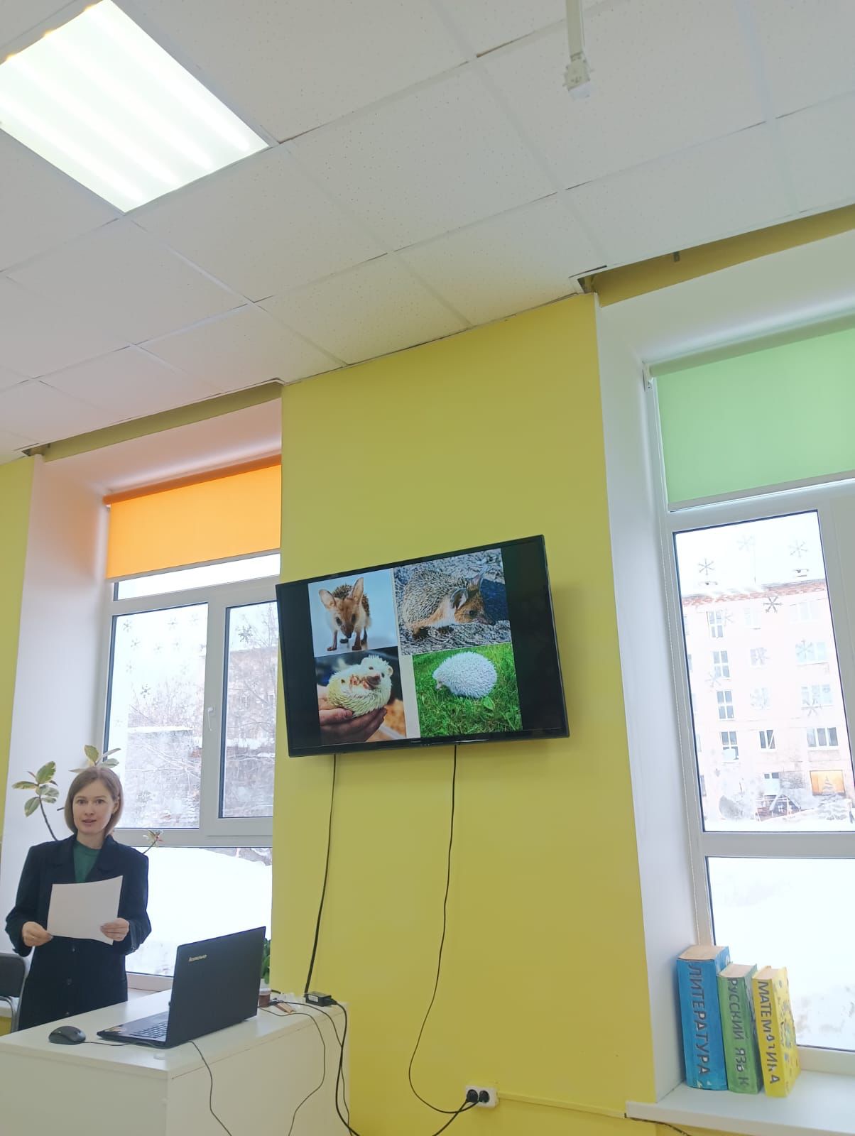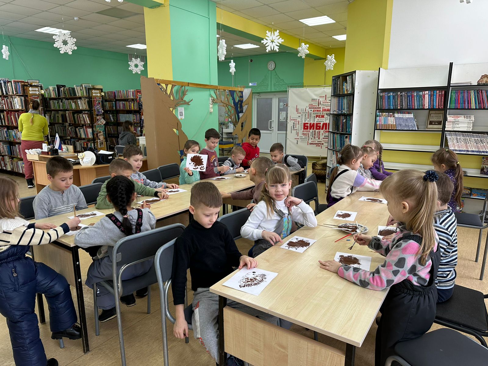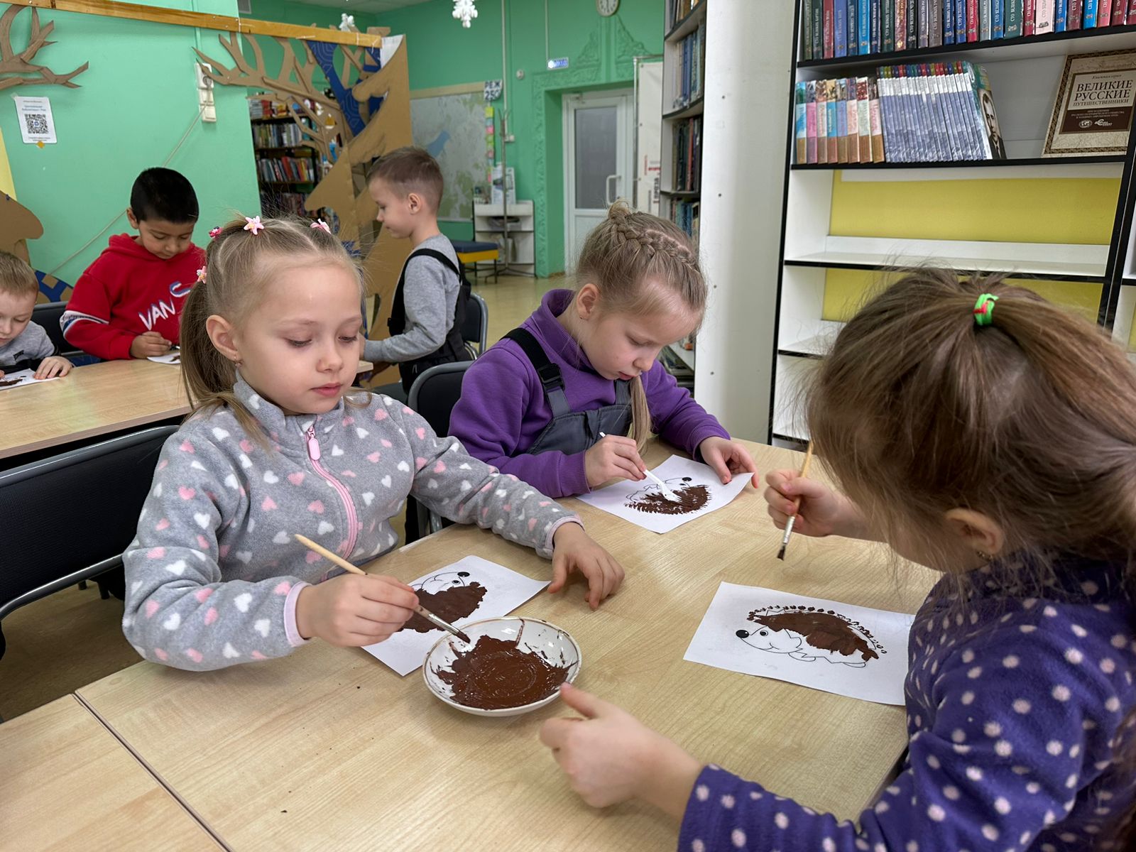 Сегодня, к нам приходили дошкольники из детского сада «Улыбка». Для детей была подготовлена презентация с интересными фактами о ежах, о их среде обитания и видах. Ребята узнали, что среди ежиков тоже есть альбиносы. А еще, у ежа 36 зубов, которые от старости могут выпадать.