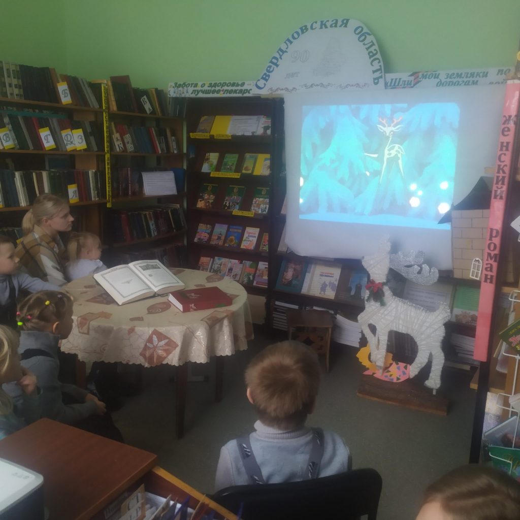 К дню рождения П.П.Бажова библиотекарь познакомили наших маленьких читателей с биографией уральского писателя, а затем они посмотрели мультфильм «Серебряное копытце».