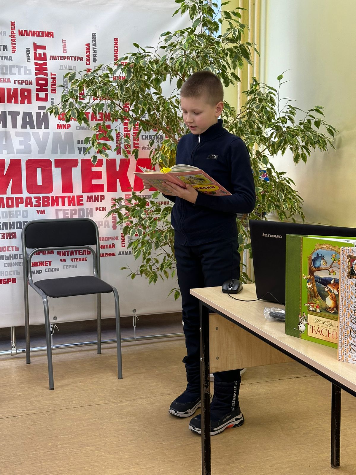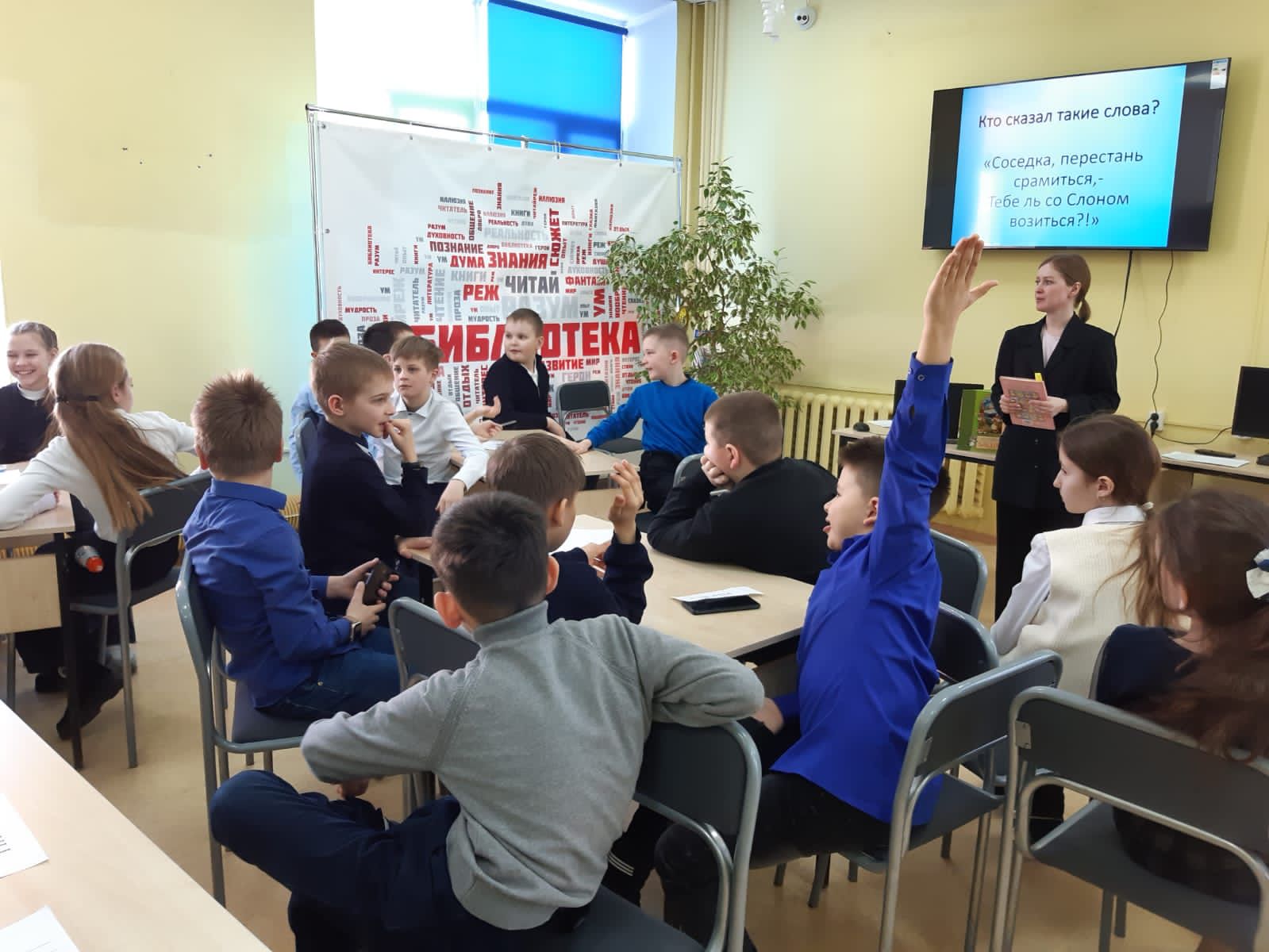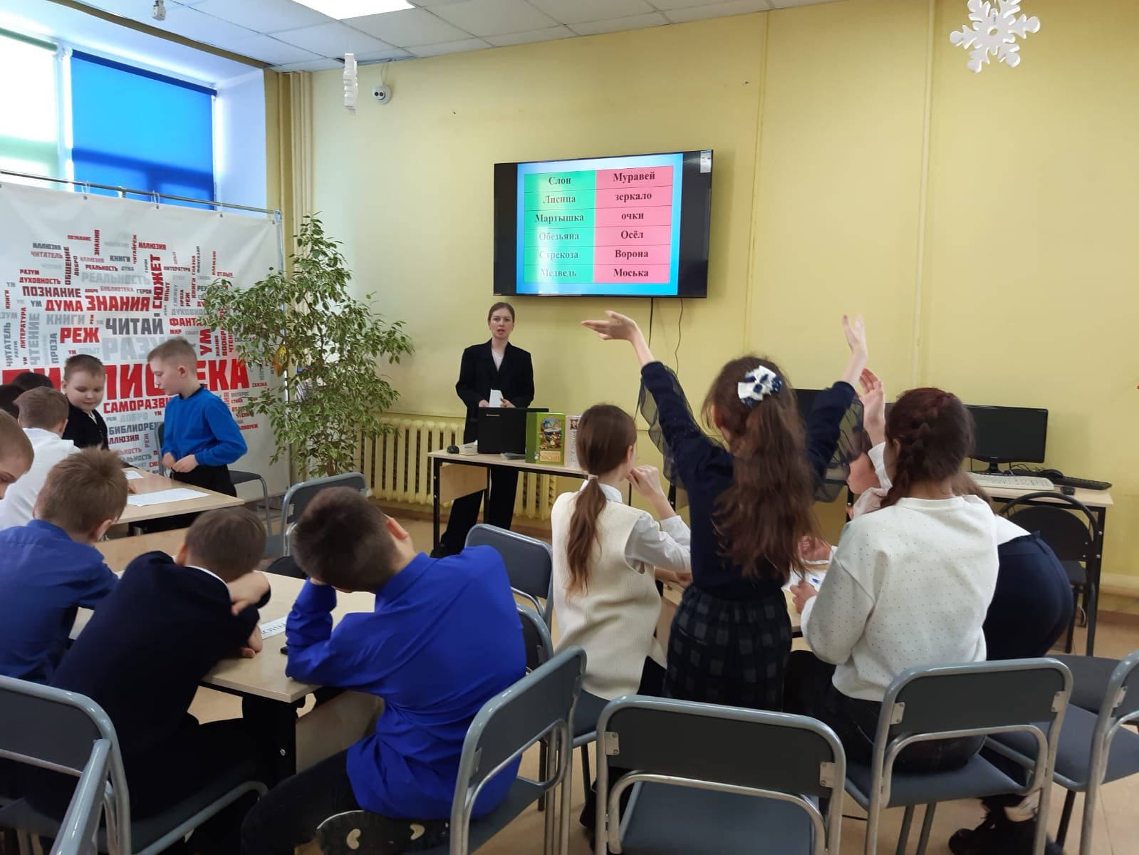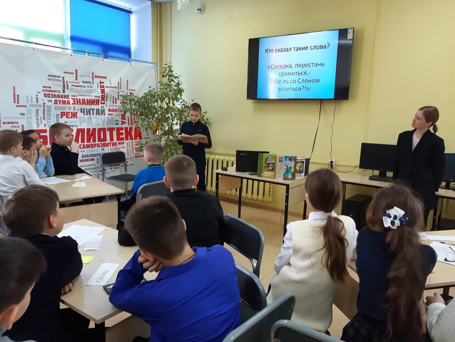 В этом году, 2 февраля, знаменитому русскому писателю и драматургу Ивану Крылову исполнилось бы 255 лет. В честь этого, для ребят 4А класса школы №2 была проведена интерактивная игра «В мире басен». Дети перемещались на разные станции. На библиографической станции, библиотекарем были рассказаны самые ключевые моменты из жизни баснописца. На следующей станции дети разгадывали кроссворд, расшифровывали имена героев и находили «пару». Например, Стрекоза-Муравей, Обезьяна-зеркало и т. д. И наконец, на «итоговой» станции мы смогли определить команду, которая победила. Команды читали басни Крылова с выражением.