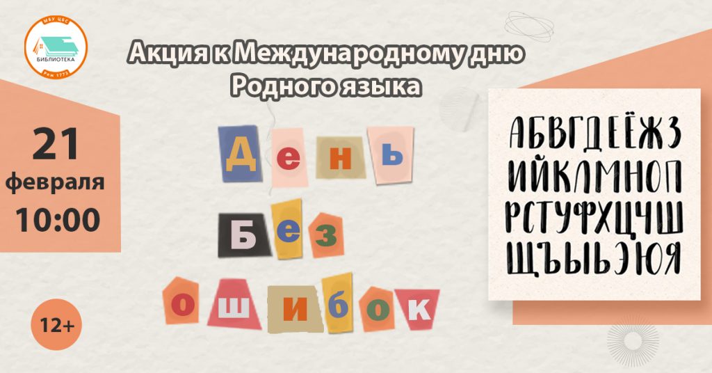 К Международному Дню родного языка мы запускаем акцию «День без ошибок», посвященную привлечению внимания к проблеме бережного отношения и сохранения чистоты русского языка