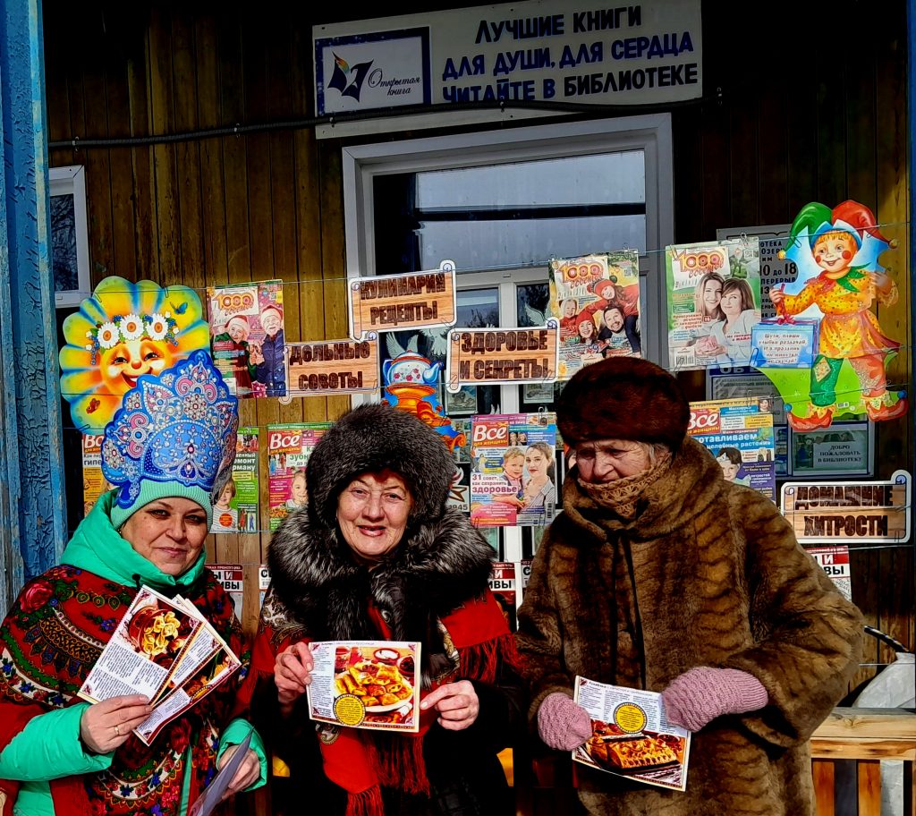 На площади перед библиотекой и Домом Культуры развернулось настоящее народное гуляние с песнями, танцами, шутками, прибаутками, загадками и частушками. Библиотекарь подготовила весеннюю журнальную выставку, на которой каждый желающий отгадавший загадку, или вспомнивший частушку или стишок про зиму, получал закладку для книг с информацией о празднике и рецептом вкусного блюда, взятого из библиотечных журналов «Всё для женщин», «1000 советов», «Моя прекрасная дача». Многих заинтересовали рубрики: «Дельные советы», «Здоровье и секреты», «Домашние хитрости». Всем достались сладкие призы, рецепты весенних блюд и хорошее настроение.
