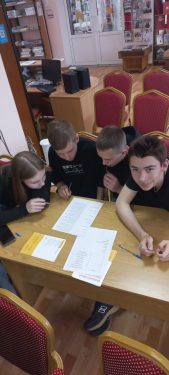 Так сегодня в Центральной библиотекой прошла экономическая игра среди учеников 9 класса Школы № 2 и групп Б1 (куратор Рубцова С. А.) и Д2 (куратор Захаров М.М.) Режевского политехникума.