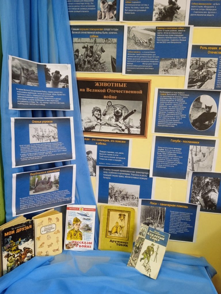 Чтобы познакомить своих читателей с героизмом братьев наших меньших в Костоусовской библиотеке оформлена выставка «Животные на Великой Отечественной войне».