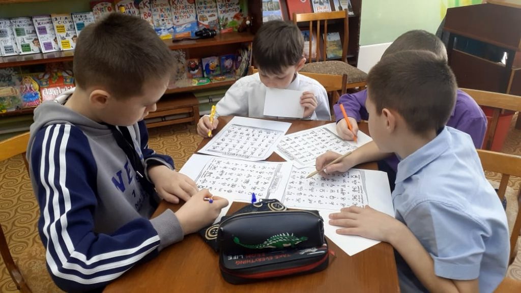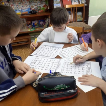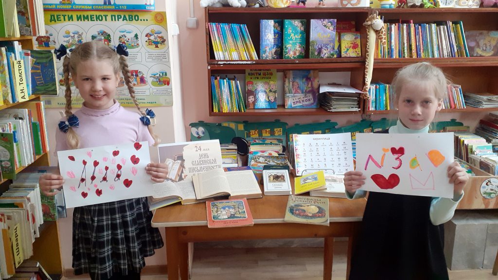 В заключение встречи в детском читальном зале ребята выполнили творческое задание – попробовали написать свои имена, используя буквы кириллицы и глаголицы. А на детском абонементе свои имена участники писали, только на кириллице.