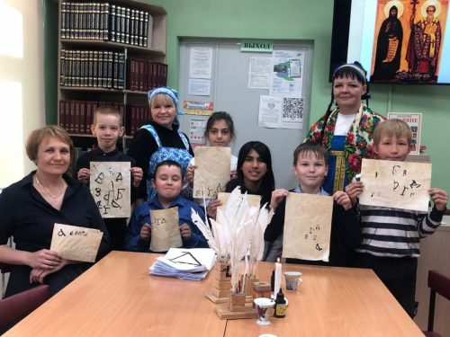 Вторая часть мероприятия состояла из мастер-класса «Как писали на Руси», которую провели работники дома культуры А. Д. Ваганова и Н. Л. Чушева. Дети увлеченно приступили к созданию своей неповторимой азбуки, используя фантазию и аккуратность в работе. За старательность детей поощрили сладостями.
