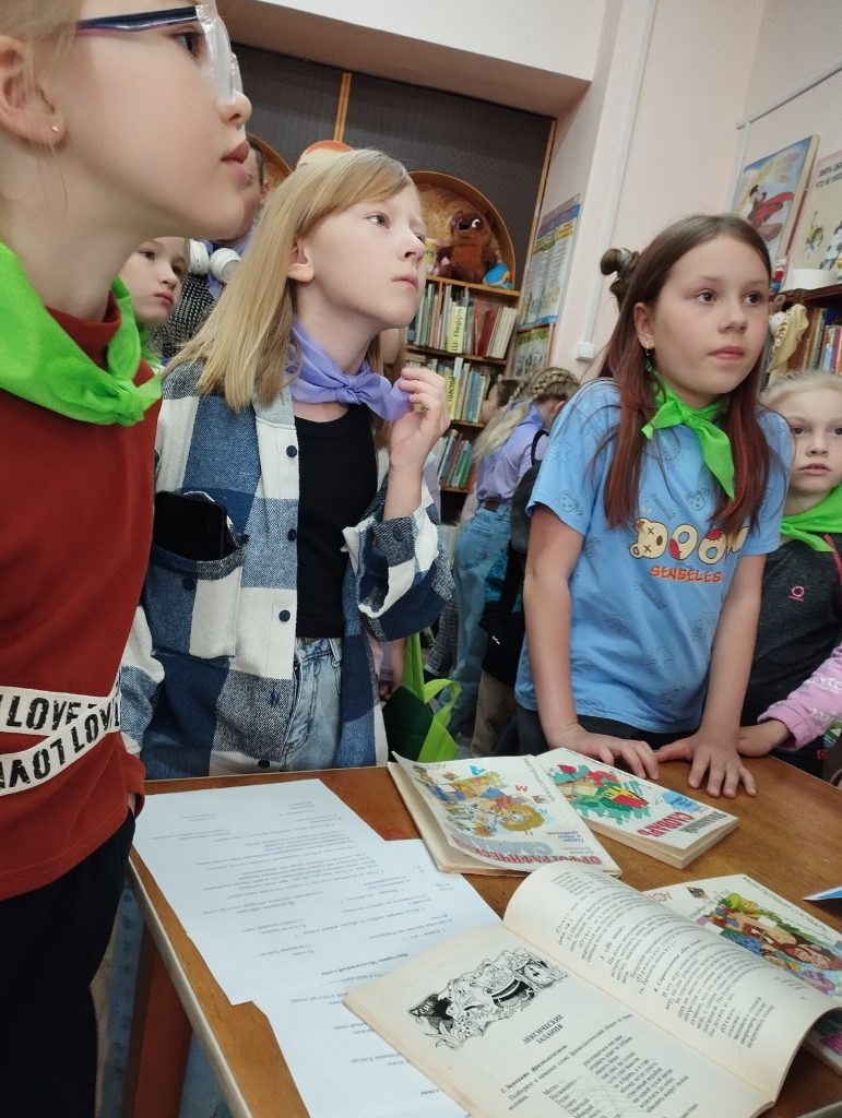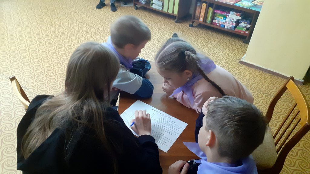 Затем исследователи творческого мира писателя ответили на вопросы кроссворда «Герои сказок Пушкина», соотнесли термин и значение устаревших слов и выражений, отгадали тематические загадки и «окунулись в Лукоморье», прочитав по желанию произведение Александра Сергеевича с тематической выставки.