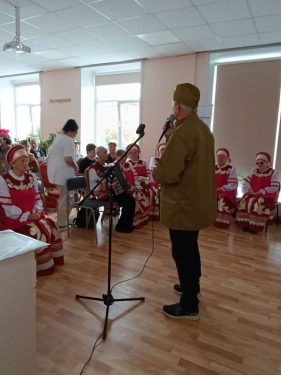 Завершилось мероприятие поэтической страничкой от Яковлевой Софьи Викторовны (заведующего отделом обслуживания Центральной библиотеки г. Реж – стихотворение ​​​​​​​Ганабина Ивана «Околица») и Деевой Вероники (студентки Режевского политехникума – стихотворение Киевской Ольги «Баллада о матери»), а также выступлением народного хора «Околица» Центра национальных культур г. Реж (руководитель Исакова Расима Астаховна) «Песни, рожденные сердцем».