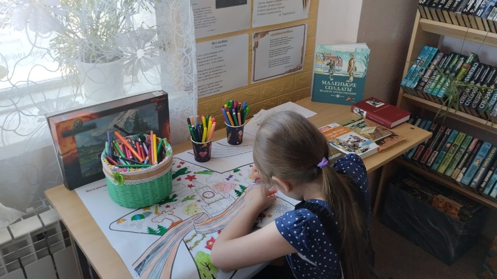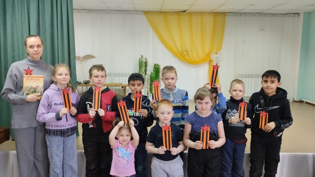 Для детей было организовано творческое чтение “Подари книге закладку”. В ходе мероприятия библиотекарь представила ребятам книгу “Победа будет за нами”. Для чтения вслух был выбран рассказ А. Глебова “Как кувшин воевал”. После этого дети с удовольствием изготовили закладки своими руками.
