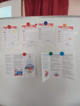 Не обошлось и без серьезной работы: участники расшифровывали правовую терминологию в рамках этапа “Правовая азбука”. Кульминацией квиза стала интерактивная программа, в ходе которой молодые люди разрабатывали листовки для предвыборной кампании, придумывая слоганы, тексты и иллюстрации. Это позволило им почувствовать себя настоящими участниками политической жизни и внести свой вклад в формирование будущего. Хочется отметить, что старшеклассники и студенты выделили несколько направлений – экология, технологии, экономика и мировые отношения. К этому же, все получили брошюры с информацией про избирательное право, выборы и терминологией темы мероприятия.