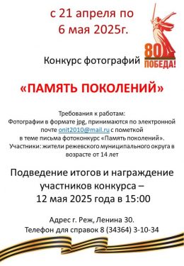 Мы рады объявить старт творческого фотоконкурса, посвященного памяти подвигов нашего народа во времена Великой Отечественной войны.