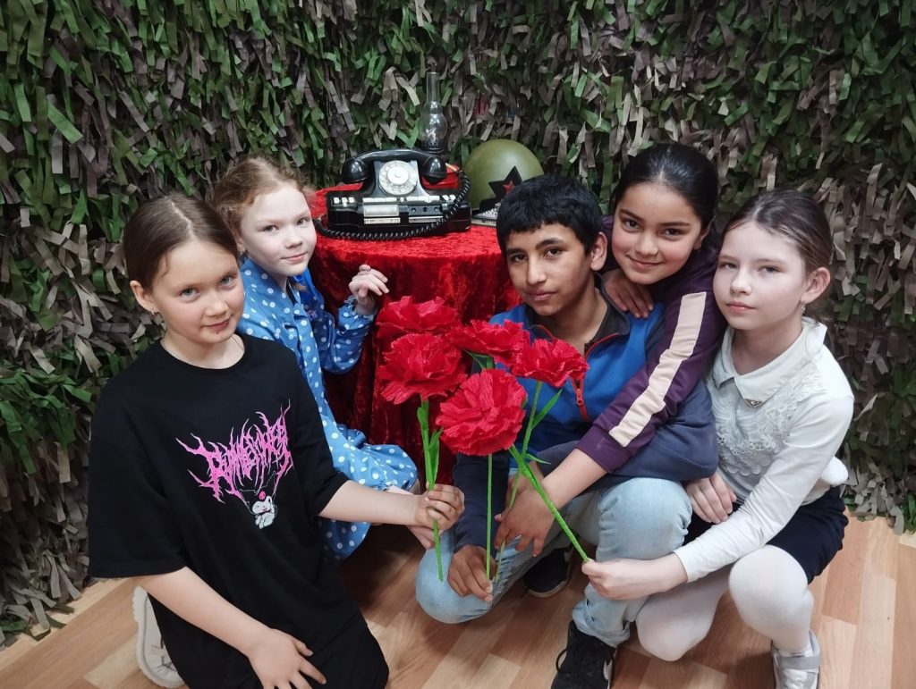 Далее и детям, и взрослым выдалась отличная возможность изготовить своими руками «Гвоздику Победы» под руководством Елены Иннокентьевны Латниковой.
