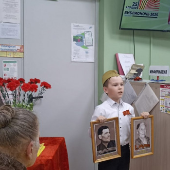 Ежегодная всероссийская акция в поддержку чтения «Библионочь» в четырнадцатый раз прошла в библиотеках страны. Тема акции в этом году – свои герои, связана с главными темами года: Годом защитника Отечества и 80-летием Победы советского народа в Великой Отечественной войне.