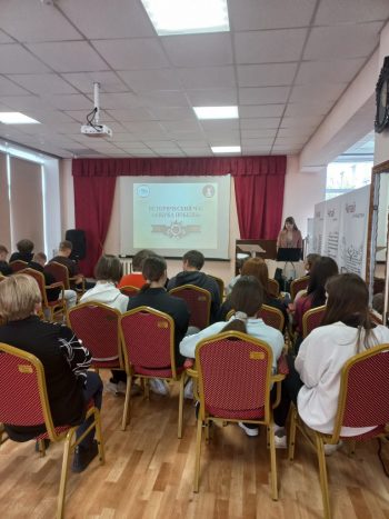 Сегодня в Центральной библиотеки прошел исторический час для учеников школы №5, как дань памяти тем страшным, но героическим годам, попытка осмыслить прошлое ради будущего.