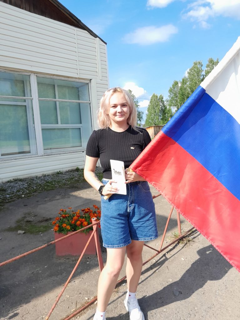 Затем вместе с работниками дома культуры мы вышли на улицы села, предлагая односельчанам принять участие в акции «Три цвета моей Родины». Рассказали об истории одного из главных символов нашей страны и вручили буклеты.