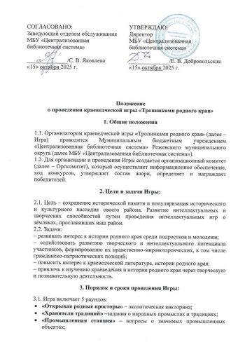 Центральная библиотека приглашает подростков и молодёжь принять участие в игре. Мероприятие направлено на популяризацию знаний о родном крае: его природе, традициях, промышленности, литературном и историческом наследии. А в жюри будут настоящие исследователи нашего края – члены Режевского общества краеведов.