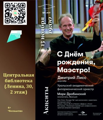 Главный дирижёр Уральского филармонического оркестра отмечает юбилей — 30 лет творческой и жизненной работы с любимым оркестром Екатеринбурга! И уже в 13 ноября 19:00 вы сможете увидеть и услышать прямую трансляцию из Свердловской филармонии в Центральной библиотеке (ул. Ленина, д. 30).