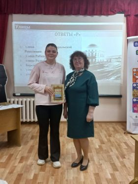 Также в качестве приглашенного гостя и спонсора индивидуальной игры “По улицам города” стала Лекомцева Надежда Юрьевна — автор сборника «Сказы Сохарёво», исследователь фольклорного наследия региона.