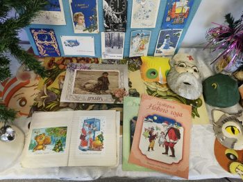 Особый восторг вызвали выставленные здесь же старые советские елочные игрушки. Увидеть яркие стеклянные шары, фигурки зверушек и героев сказок было удивительно приятно каждому взрослому человеку, ведь многие из них сразу вспоминали собственное детское восхищение этими предметами, услышав знакомую фразу: «Ой, а у меня такая игрушка была в детстве!» Эта фраза звучала ежедневно в стенах библиотеки, словно связывая поколения.