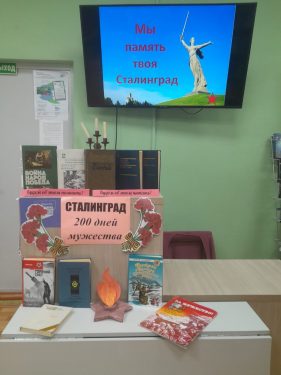 Давно отгремели залпы Сталинградской битвы. И сегодня никто, будь то взрослый или ребёнок, не остаётся равнодушным, услышав о подвигах защитников города. Юные посетители библиотеки погружались в атмосферу героизма, читали стихи о героях Сталинграда. Нам важно сохранить память о великом подвиге наших предков, гордиться их мужеством и стойкостью духа.