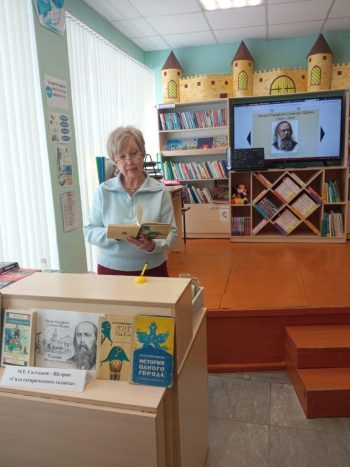 Библиотекарь рассказали детям о жизни и творчестве Михаила Евграфовича, выдающегося русского писателя-реалиста и литературного критика, известного своими острыми сатирическими сказками. Она поведала о его детстве, учебе, службе, которая дала материал для его произведений, и о том, как он стал «писателем мудрых сказок». Также обсудили личную жизнь писателя, чьи произведения до сих пор вызывают смех и заставляют задуматься.